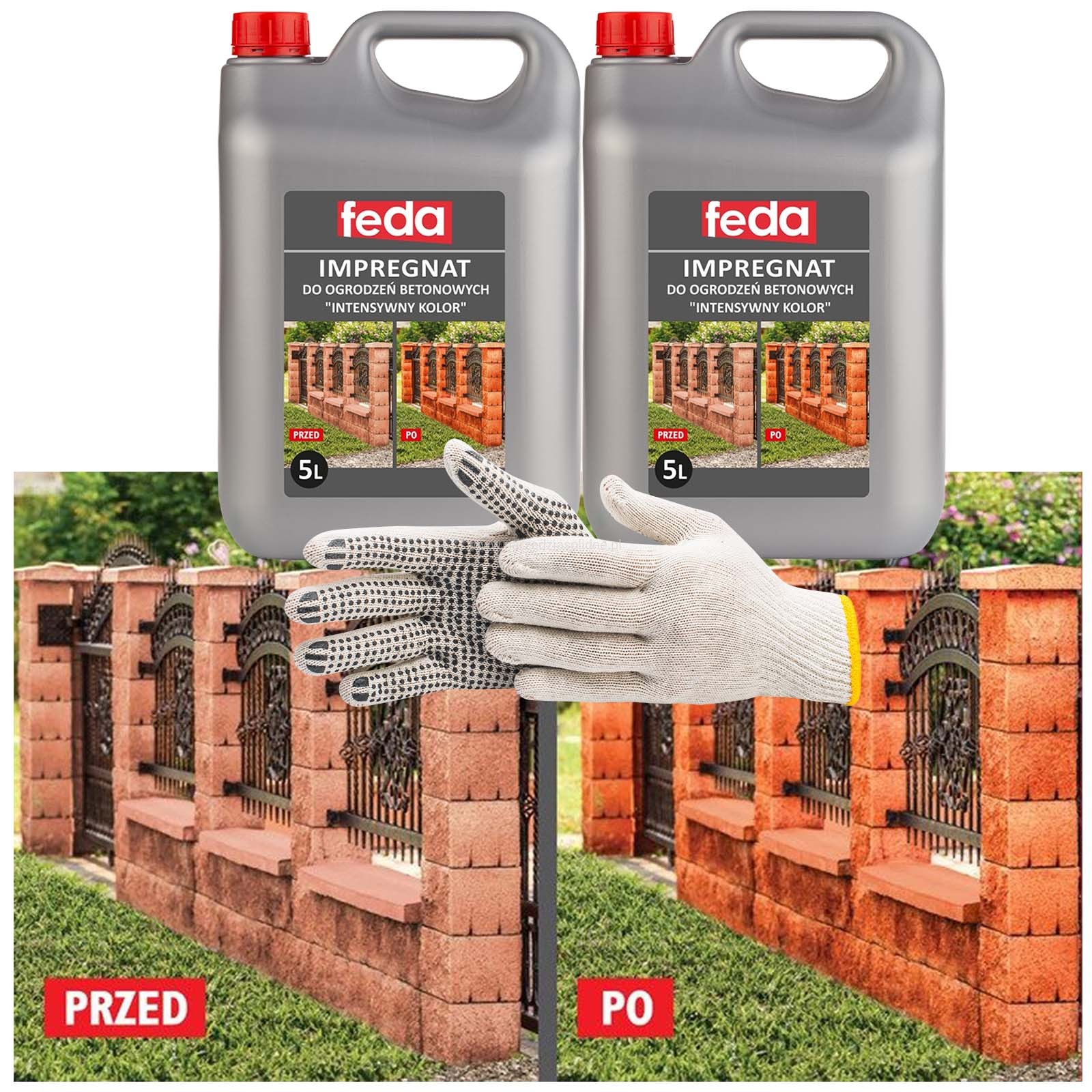 - impregnat znanej marki FEDA - skutecznie chroni ogrodzenia betonowe od ponad 10 lat