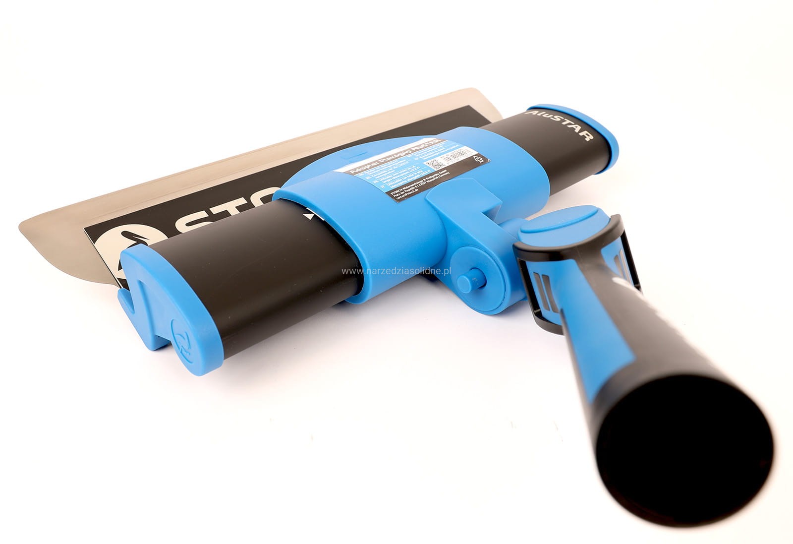 - 1 x Adapter/uchwyt do noży do gładzi Storch Alustar Black, z regulacją kąta w dwóch płaszczyznach (umożliwia pracę z teleskopem góra-dół i prawa-lewo)