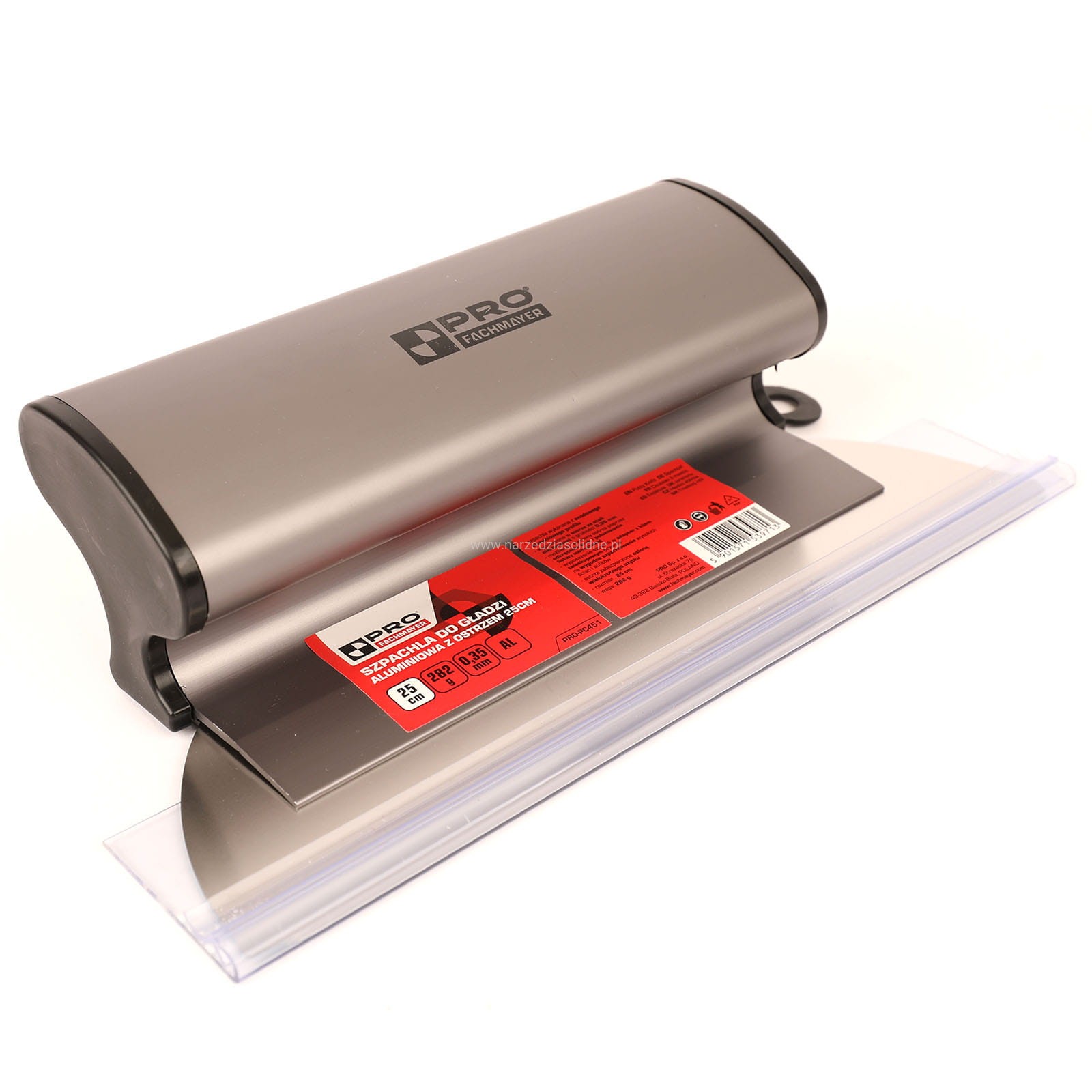 - 1 x Nóż do gładzi PRO 25 cm, profil ALU, ostrze 0.35 mm, zaokrąglone brzegi nierysujące - narzędzie kompletne, gotowe do pracy