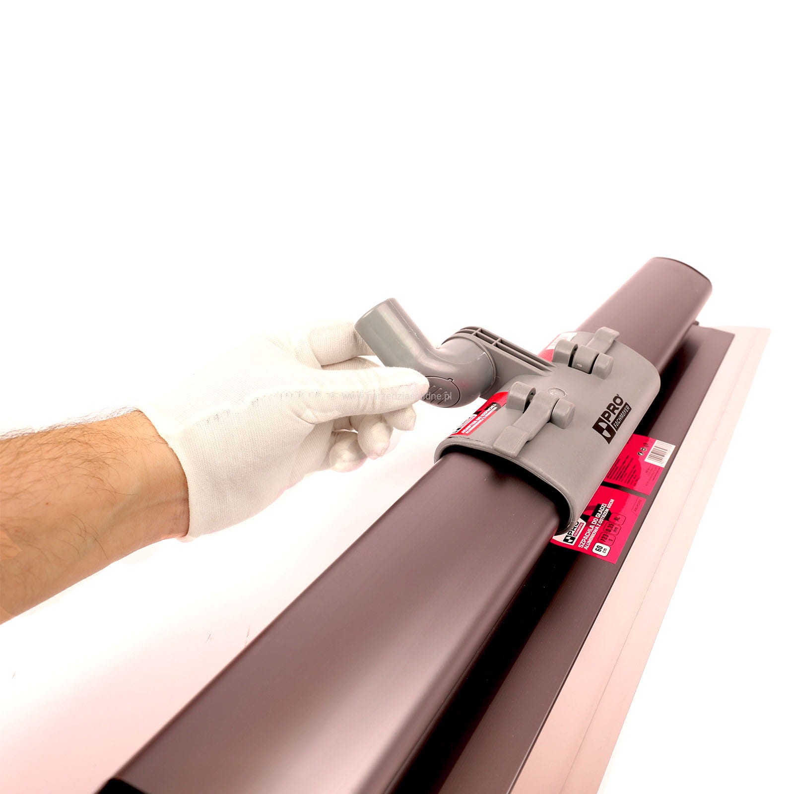 - Szpachla wykonana z anodowanego aluminiowego profilu. Proces anodowania polega na wytworzeniu na powierzchni aluminium ochronnej warstwy tlenku, co poprawia twardość oraz zwiększa odporność na ścieranie i korozję