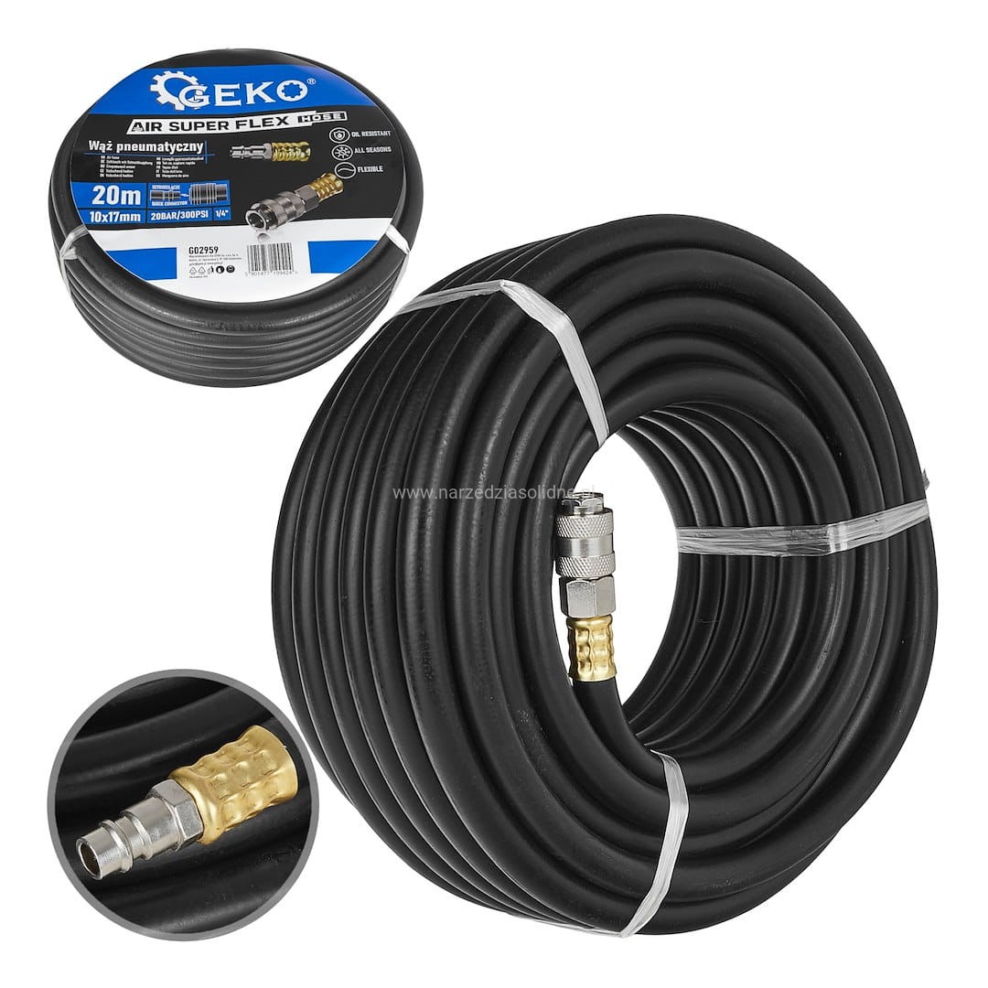 Wąż gumowy, pancerny 20m z kutymi końcówkami, profesjonalny