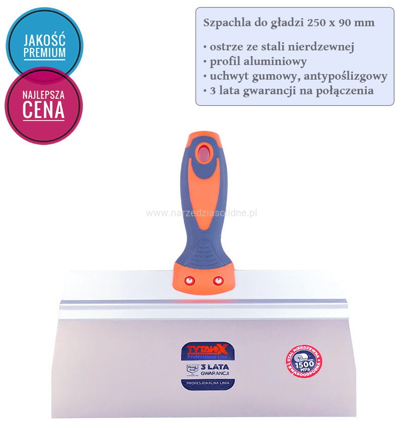- 1 x szpachla do gipsu 250x90 mm, uchwyt gumowy